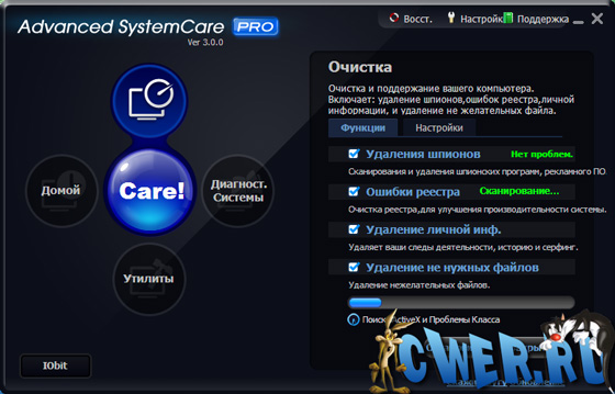 Advanced SystemCare вы сможете очистить ПК от шпионского и рекламного ПО,